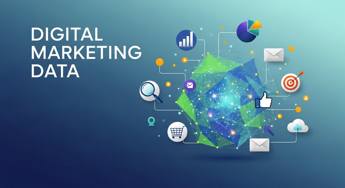 Digital marketing data refers to information collected from online marketing activities, including website interactions, social media engagement, email campaigns, advertising performance, and customer behaviors. It provides insights into audience preferences, campaign effectiveness, and overall marketing ROI.